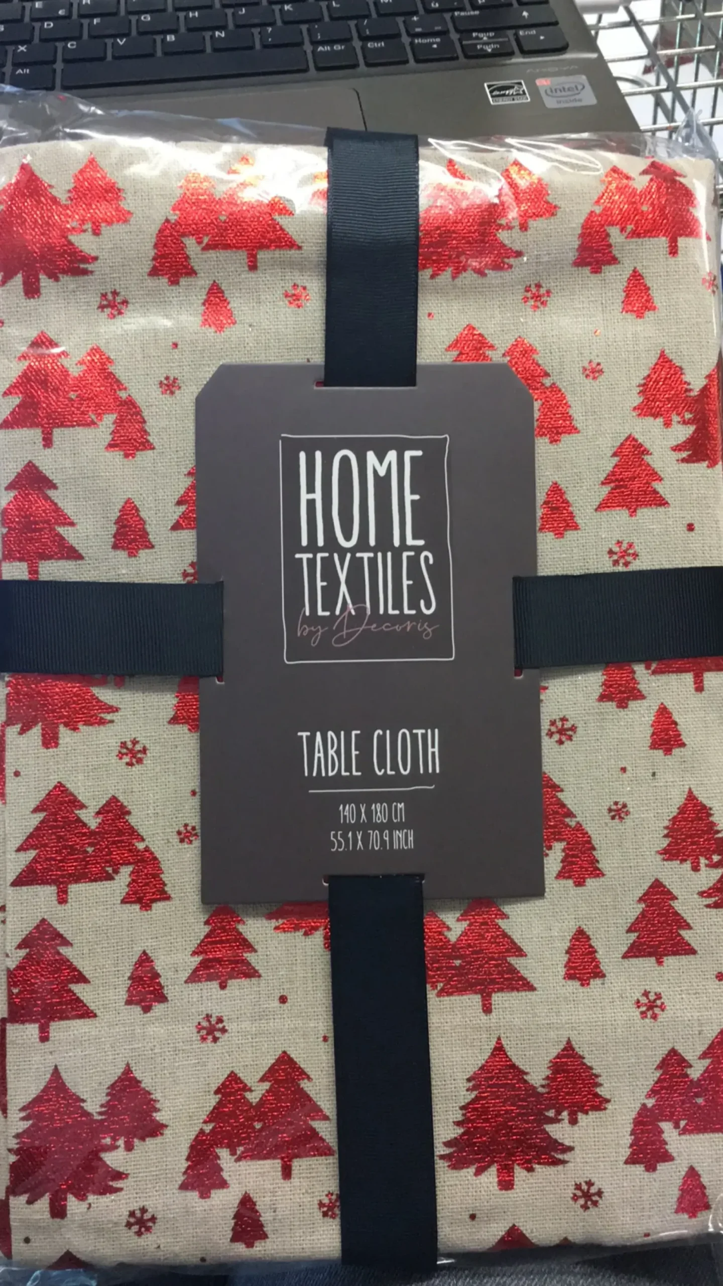 Nappe effet lin avec sapins rouges