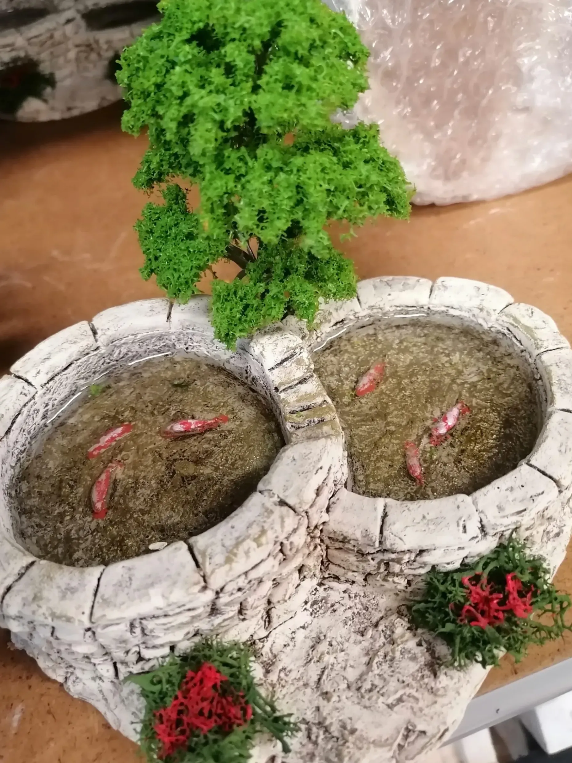 Réalisée de manière artisanale en argile, cet étang est réalisé à l’échelle pour accompagner vos santons de 7 cm.